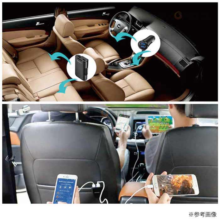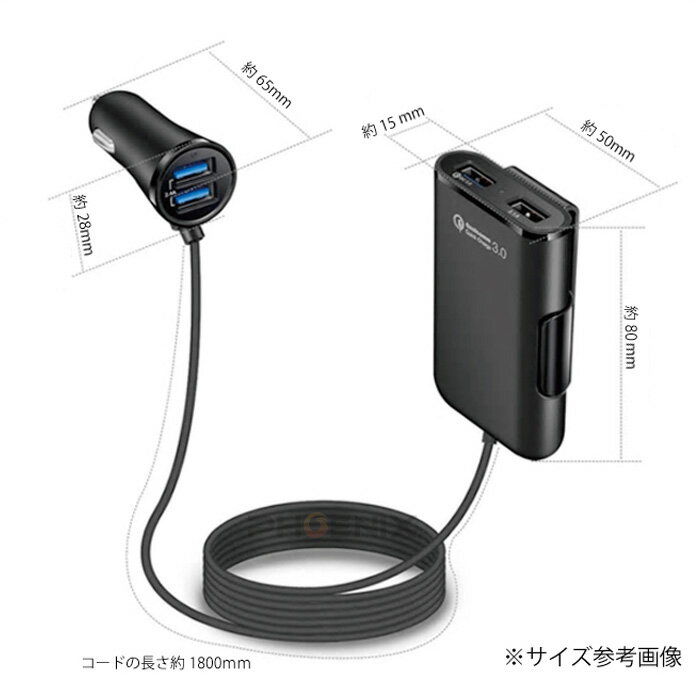 ■仕様:4ポートUSB ■説明:●最大4台同時充電可能で使用機器が多くてももう困らない! ●大容量でiphone、Androidなどのスマートフォン、ipadなどタブレット端末、音楽プレイヤーや 加熱式タバコ、ゲーム機やデジタルカメラまでUSB充電対応のあらゆる機器に対応! ●後部座席用は急速充電対応。