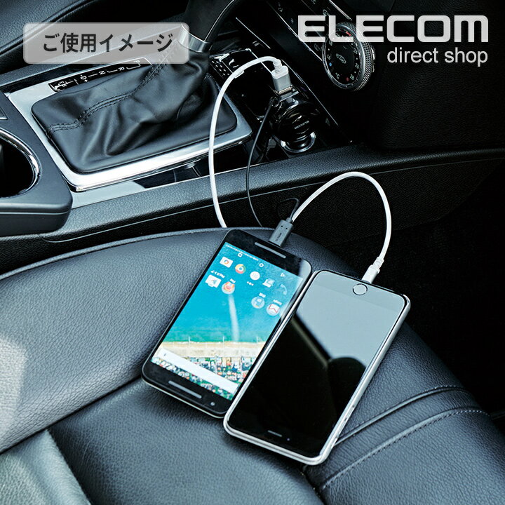 ■自動車のアクセサリソケットに接続するだけで、スマートフォン・タブレットを充電できる車載充電器です。