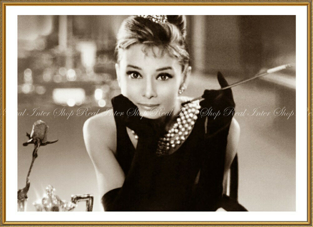絵画風 壁紙ポスター (はがせるシール式) オードリー・ヘップバーン ティファニーで朝食を 【額縁印刷/トリックアート】 キャラクロ AHB-005SGE1 (805mm×585mm) 建築用壁紙+耐候性塗料 インテリア